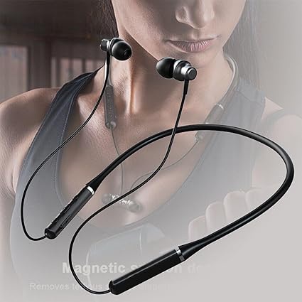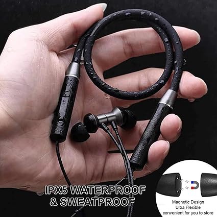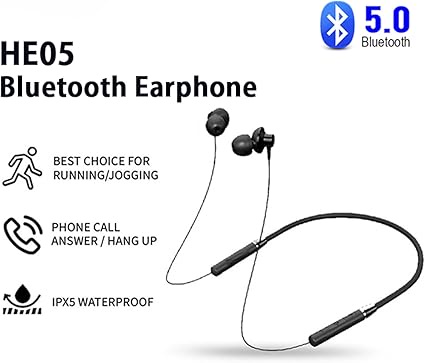 سماعة HE05 اللاسلكية بتقنية Bluetooth 5.0 وتصميم طوق حول الرقبة، مقاومة للماء والغبار IPX5 مع ميكروفون مدمج وصوت قوي مناسب للجري والرياضة.