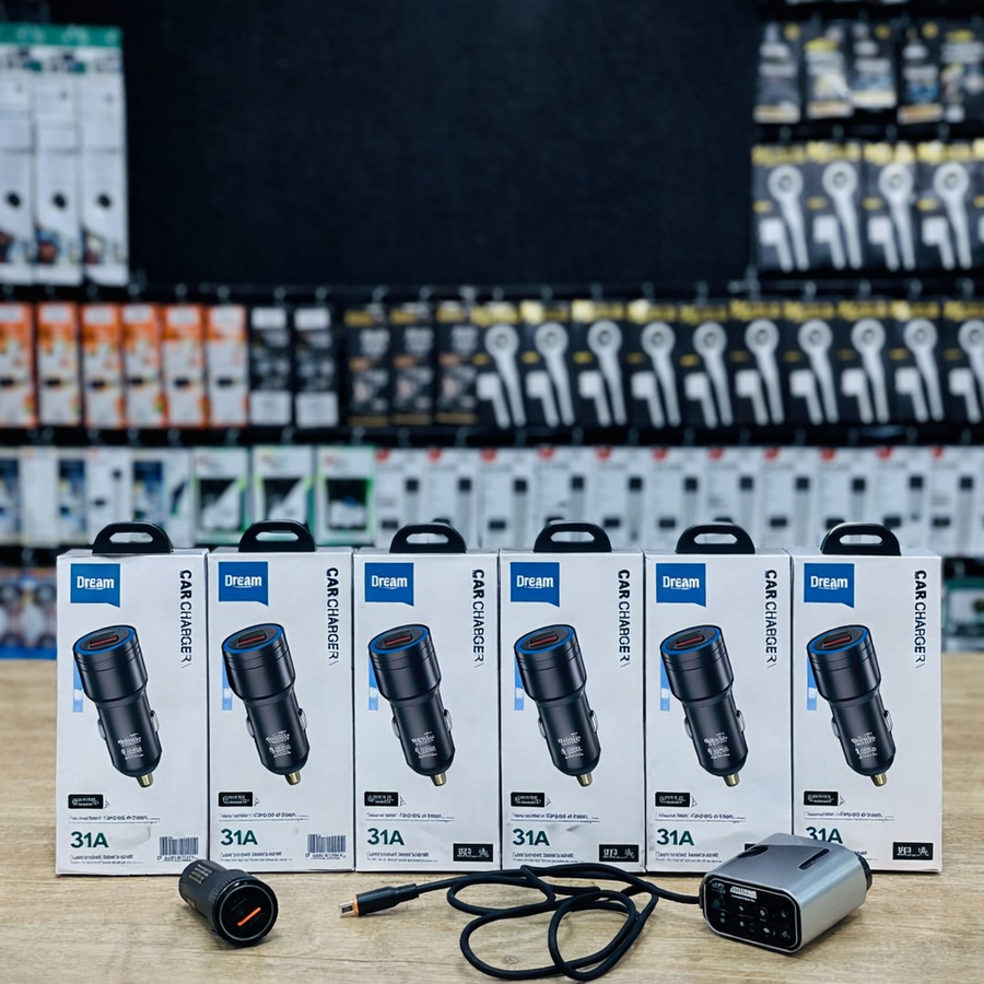 شاحن سيارة سريع 38W بمنفذ USB وType-C مع دعم QC3.0 وكابل مرفق، مناسب لجميع الهواتف والأجهزة ويعمل على جميع السيارات.