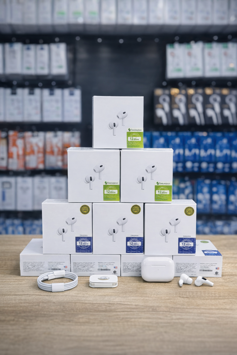 AirPods Pro 2 بأفضل سعر من Q4store.com – تصميم احترافي، صوت واضح، اتصال سريع، وشحن عملي. اطلب الآن واستمتع بتجربة مميزة وجودة عالية.